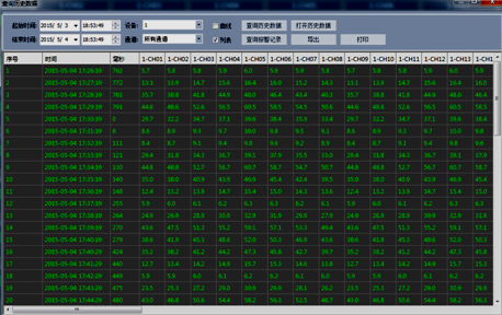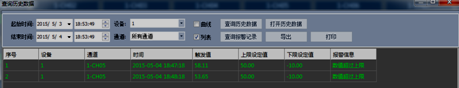 點擊主菜單欄中的“查詢”選項中的“歷史數據”,彈出圖2-17界面,在該界面中選中你需要查詢的數據,然后在選擇相應的操作:打開歷史曲線、打開歷史列表。