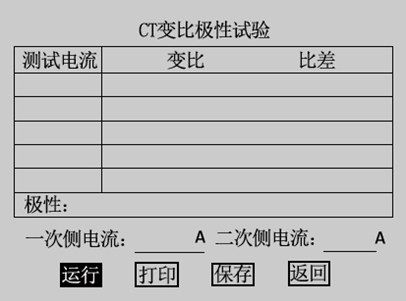 互感器綜合特性測試儀檢查接線完成后,選擇開始試驗選項并按下旋轉(zhuǎn)鼠標(biāo),進(jìn)入變比極性測試界面,如圖3.20所示。進(jìn)入變比極性測試界面后,將光標(biāo)移動至運行選項并按下旋轉(zhuǎn)鼠標(biāo),儀器自動進(jìn)行變比試驗。互感器綜合特性測試儀CT變比極性試驗結(jié)果操作界面顯示如圖3.21所示,在變比極性試驗過程中,選擇停止選項并按下旋轉(zhuǎn)鼠標(biāo),可提前終止試驗。