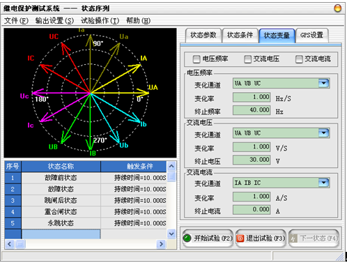 微機繼電保護測試儀試驗步驟4:狀態變量。