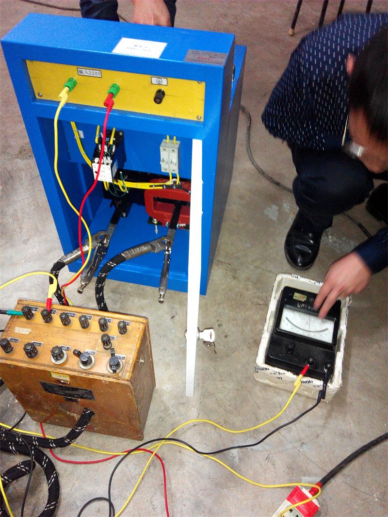 3.20號(hào),公司技術(shù)人員就從武漢出發(fā),21日中午就到達(dá)該公司。下午到電力公司實(shí)驗(yàn)檢測(cè)中心做培訓(xùn)。首先做絕緣靴耐壓,注水實(shí)驗(yàn)正常,但他們所用絕緣靴明確規(guī)定嚴(yán)禁注水實(shí)驗(yàn),只能干式耐壓,因此要求我們配鋼珠;再用升流器校準(zhǔn)電流互感器做演示實(shí)驗(yàn);最后用變比測(cè)試儀測(cè)試電壓互感器變比。