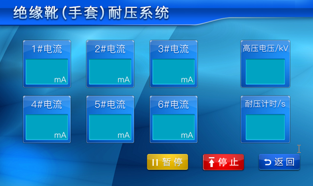 注:以下參數(shù)用戶可根據(jù)被試品的要求進(jìn)行設(shè)定,本智能控制系統(tǒng)采用了智能優(yōu)先,手動和自動兩種控制模式,用“自動時”除急停按鈕其它的操作無效。用“手動時”除屏上停止按鈕其它的操作無效。