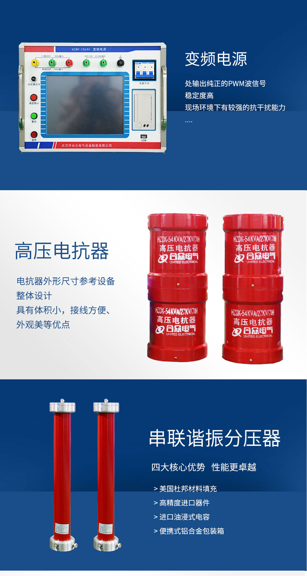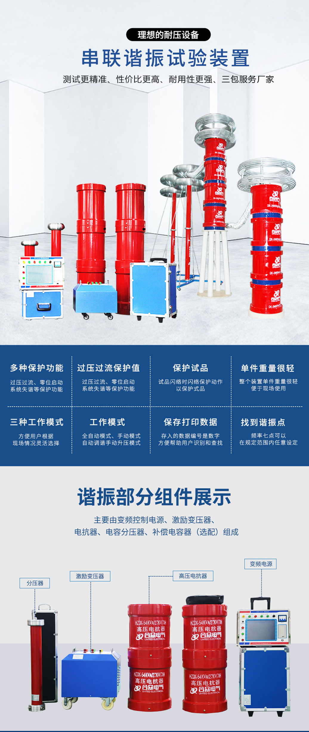 *該裝置主要由變頻控制電源、激勵(lì)變壓器、電抗器、電容分壓器、補(bǔ)償電容器(選配)組成。