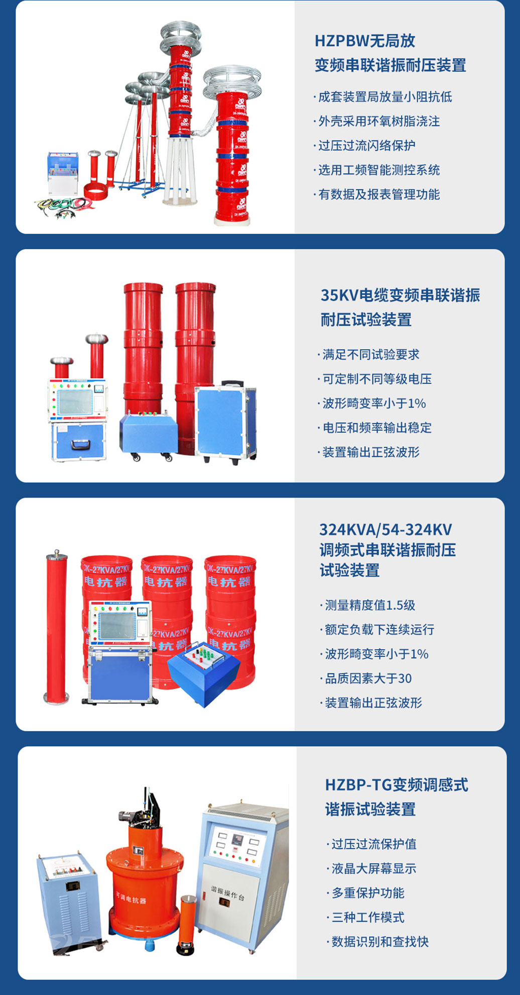 產(chǎn)品別稱:串聯(lián)諧振、變頻諧振、變頻串聯(lián)諧振、串聯(lián)諧振試驗(yàn)設(shè)備、串聯(lián)諧振耐壓裝置、電纜耐壓串聯(lián)諧振裝置