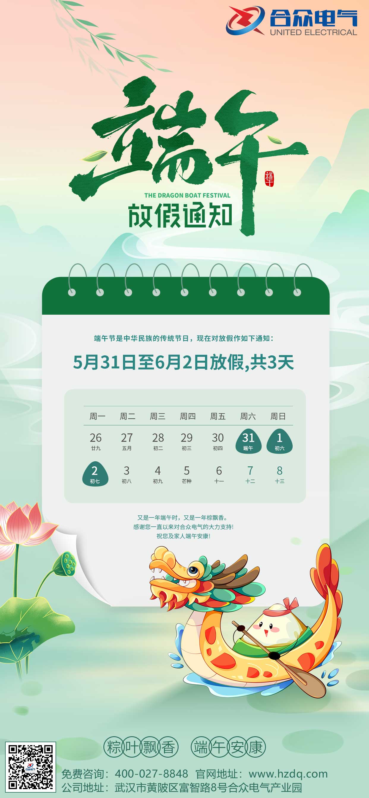 一年一端午,一歲一安康。端午節即將來臨,根據《國務院辦公廳關于2025 年部分節假日安排的通知》,結合我公司實際情況,現將端節放假安排的有關事宜通知如下: